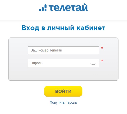Доступ в личный кабинет Телетай предоставляется на официальном сайте оператора.